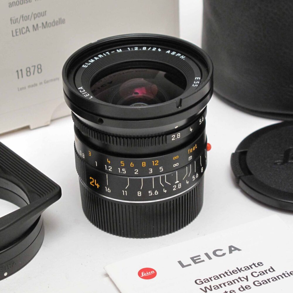 Leica 24mm f2.8 Elmarit-M ASPH., Peter Loy December 9, 2025 black, 11878 + caps, 12592 hood, hood cap, case & box. Condition 3/D (minor dust). Near mint. c.1997