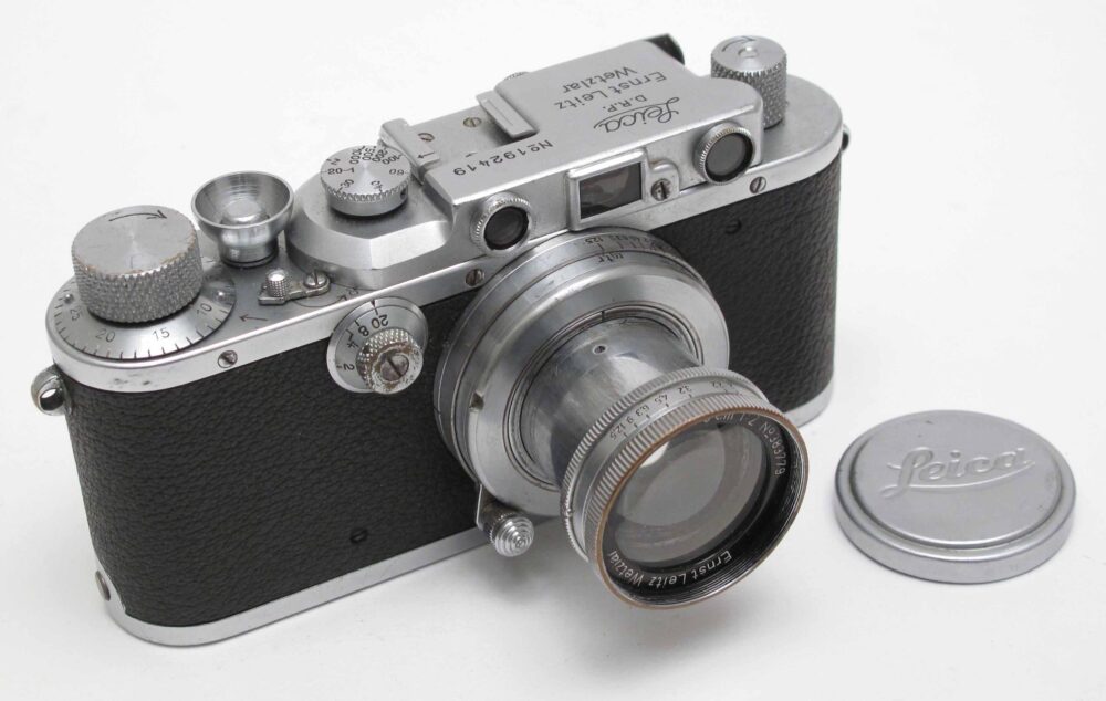 + cap. Condition: body 5/E (rangefinder useable but lacks contrast), lens 5-6/E (aperture stiff, haze). Body c.1936, lens c. 1937