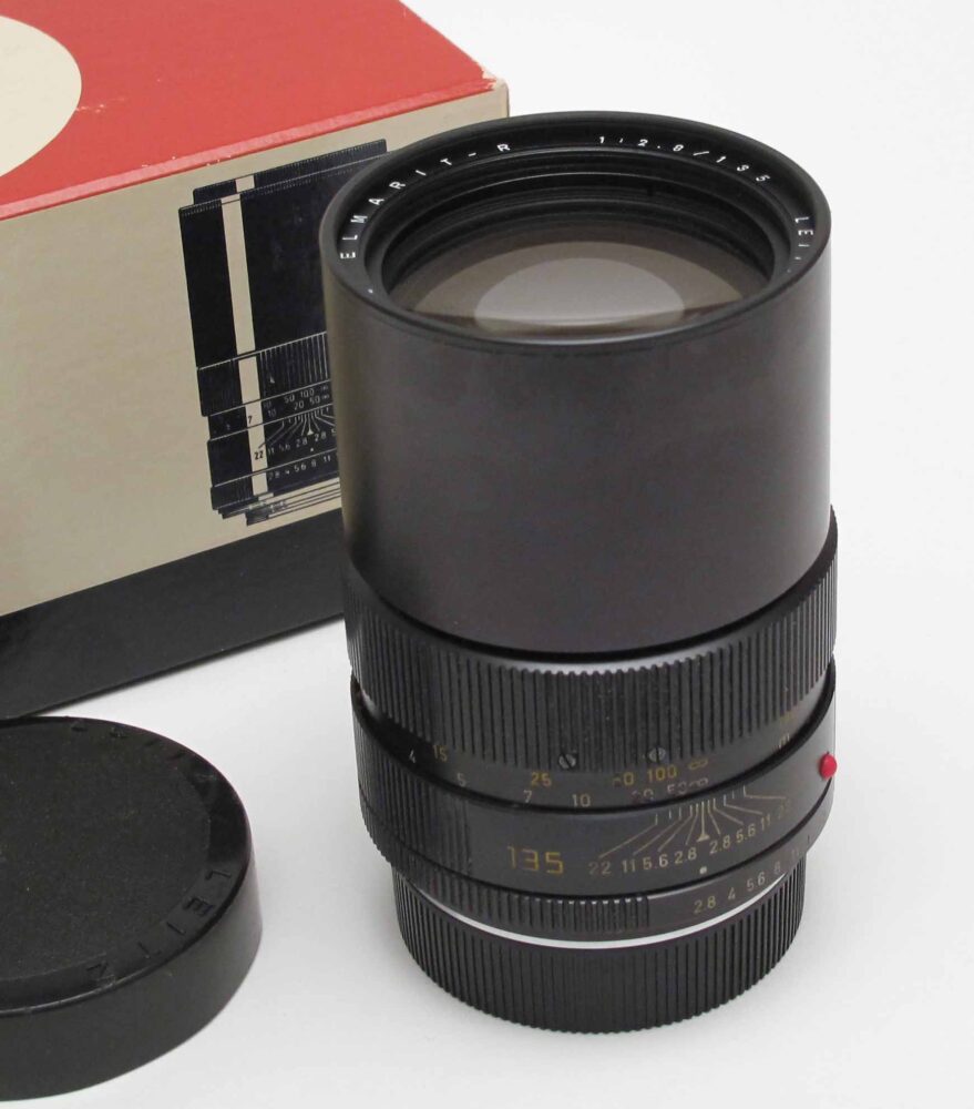 Leitz 135mm f2.8 Elmarit-R (II), 2-cam Peter Loy November 5, 2025 + caps & box. Condition 5/E (haze and traces of fungus at edge). c.1977. Tested – produces excellent quality images
