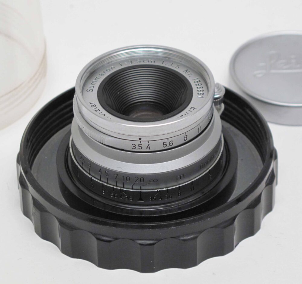 Leitz 3.5cm f3.5 Summaron, E39 Peter Loy January 22, 2026 + cap & keeper. Condition 4/E (haze, focus slightly stiff), cap 5/D