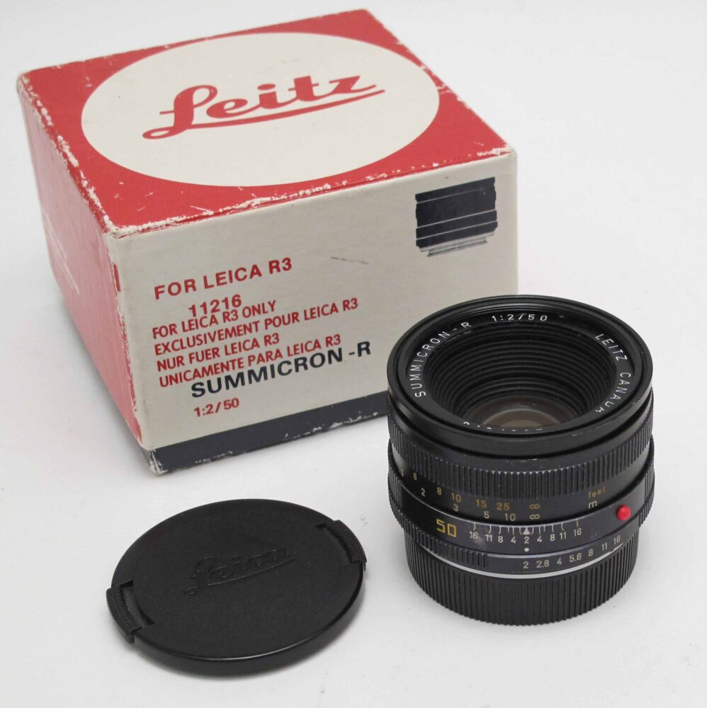Leitz 50mm f2 Summicron-R, R only mount Peter Loy January 29, 2026 + caps & box. Condition 5-6/E (optics slightly marked, minor haze). c.1978. Tested – produces superb quality images