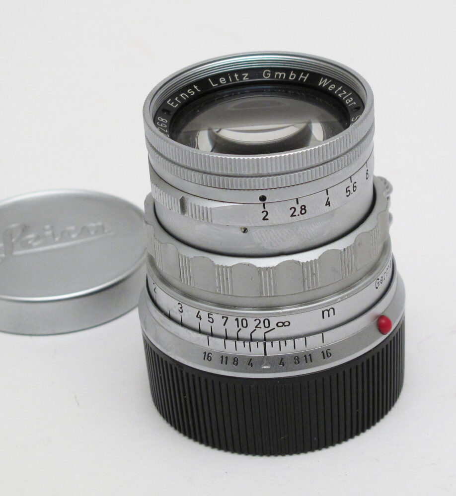 Leitz 5cm f2 Summicron, rigid, M mount Peter Loy December 30, 2025 + cap & later rear cap. Condition 5/E (light haze & a few minor scratches, minimal oil on iris blades). c.1957