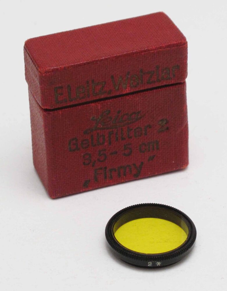 Leitz ‘FIRMY’ type G medium yellow filter Peter Loy October 30, 2025 for 3.5 & 5cm Elmar, boxed. Condition 4/D. Rare filter – much less common than the light yellow version
