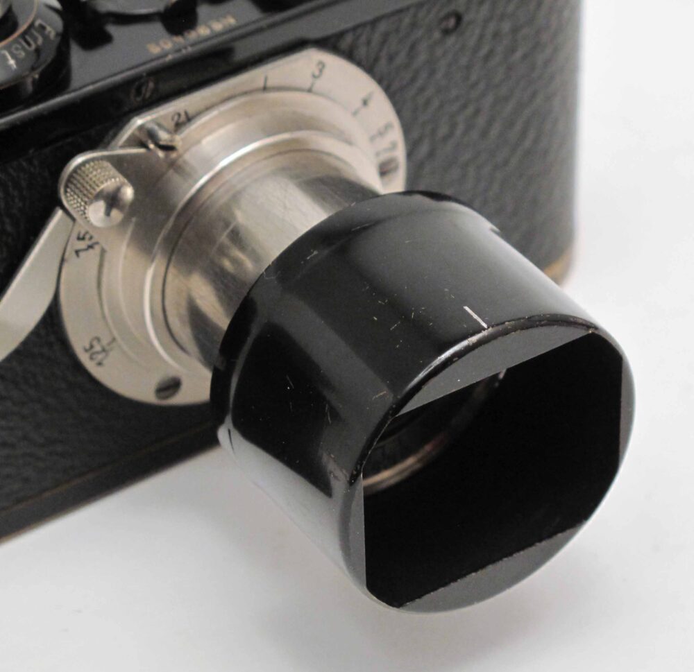Leitz ‘FISON’ 5cm A36 Elmar hood, black, rare 1st version Peter Loy February 5, 2026 with rectangular front. Condition 4-5/D