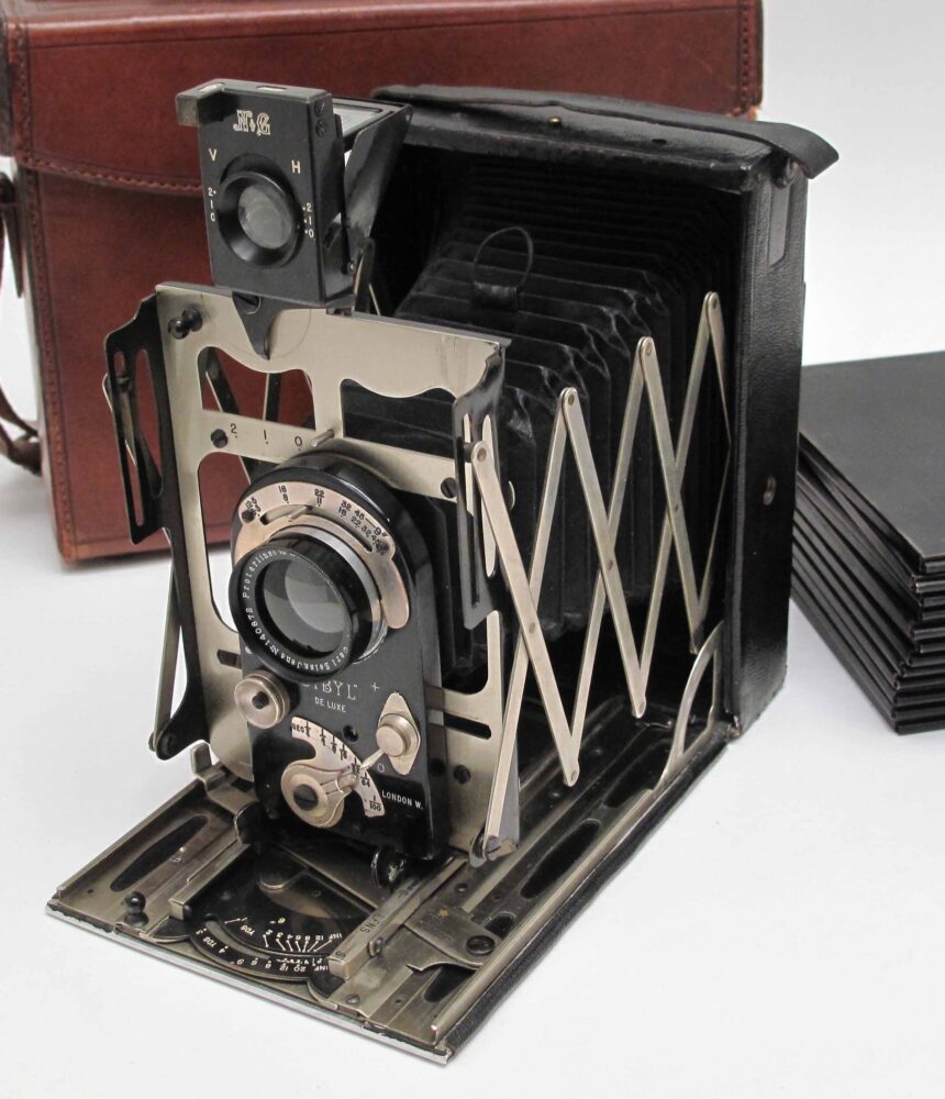 Zeiss 22cm Protarlinse VII + 12 plate holders + James A Sinclair (54 Haymarket, London) outfit case. Condition 4/J (shutter erratic – usually sticking open). Very rare – production could be as low as 100 cameras