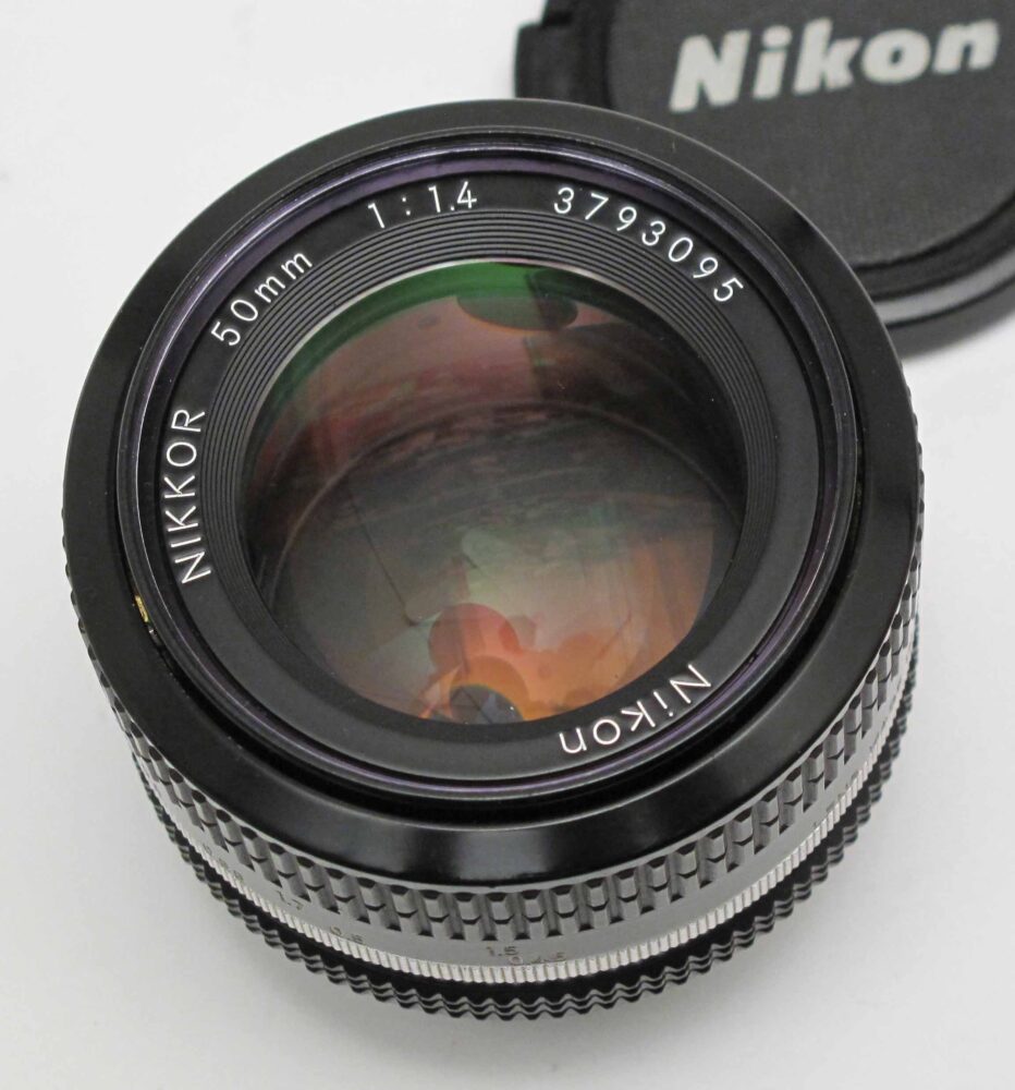 Nikkor 50mm f1.4 AI Peter Loy February 5, 2026 + caps. Condition 4/E (focus not smooth, internal haze). Tested – produces superb quality images, despite the haze