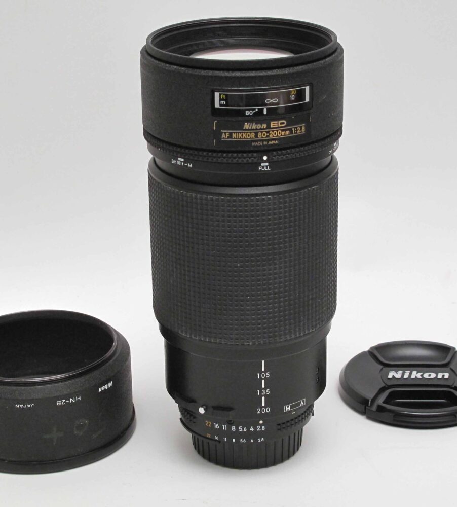 Nikkor AF 80-200mm f2.8 ED Peter Loy October 7, 2025 + caps & HN-28 hood. Condition 5/D (minor internal dust), hood 5-6/D