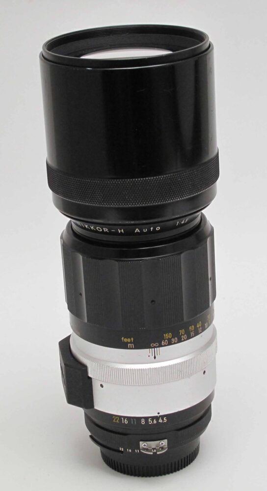 Nikkor-H 300mm f4.5 AI converted Peter Loy December 9, 2025 + rear cap. Condition 5/E (some haze at edge of rear element & a few minor scratches)