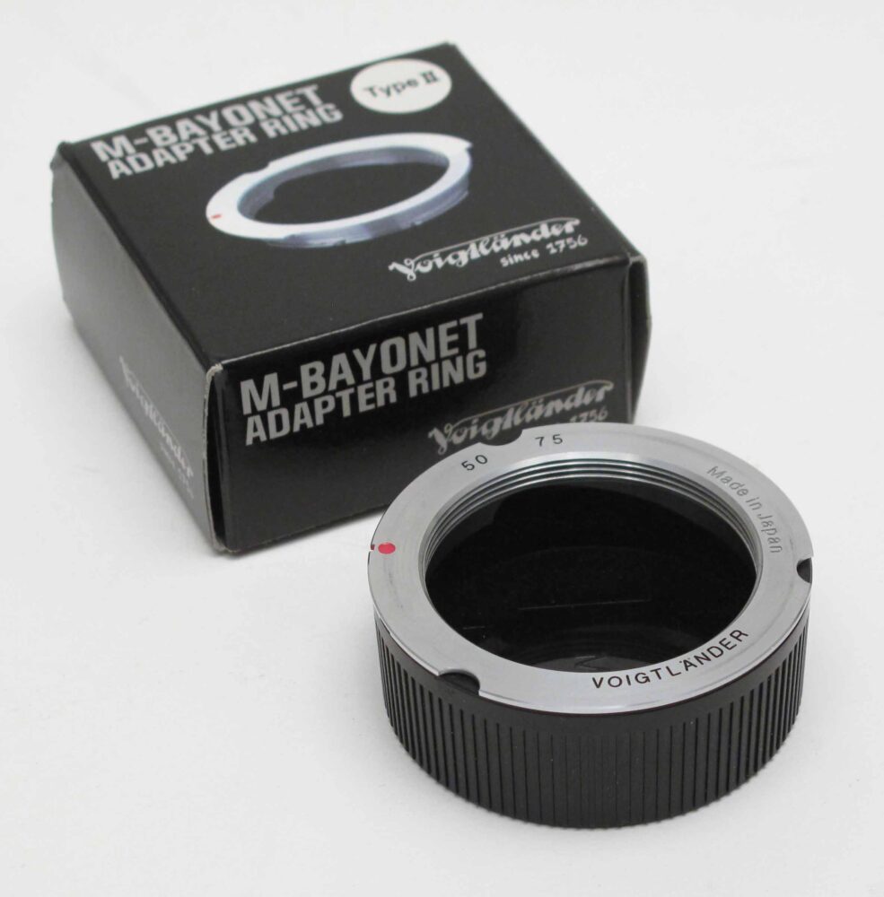 Voigtlander 50/75mm screw to bayonet adapter Peter Loy August 6, 2025 (M-Bayonet adapter ring), type II + cap, boxed. Condition 4/D
