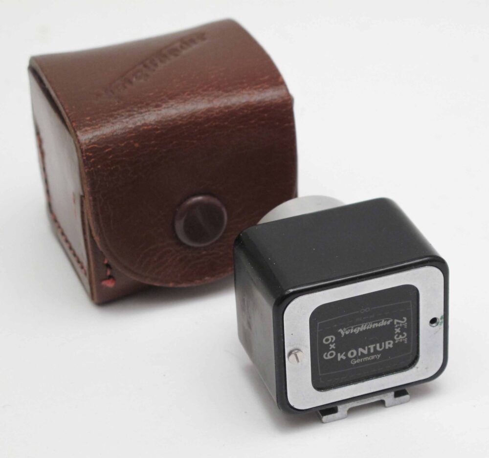 + leather case. Condition 5-6/D (one screw missing from front – does not affect finder in use). For Bessa II etc. Much harder to find than the 35mm version